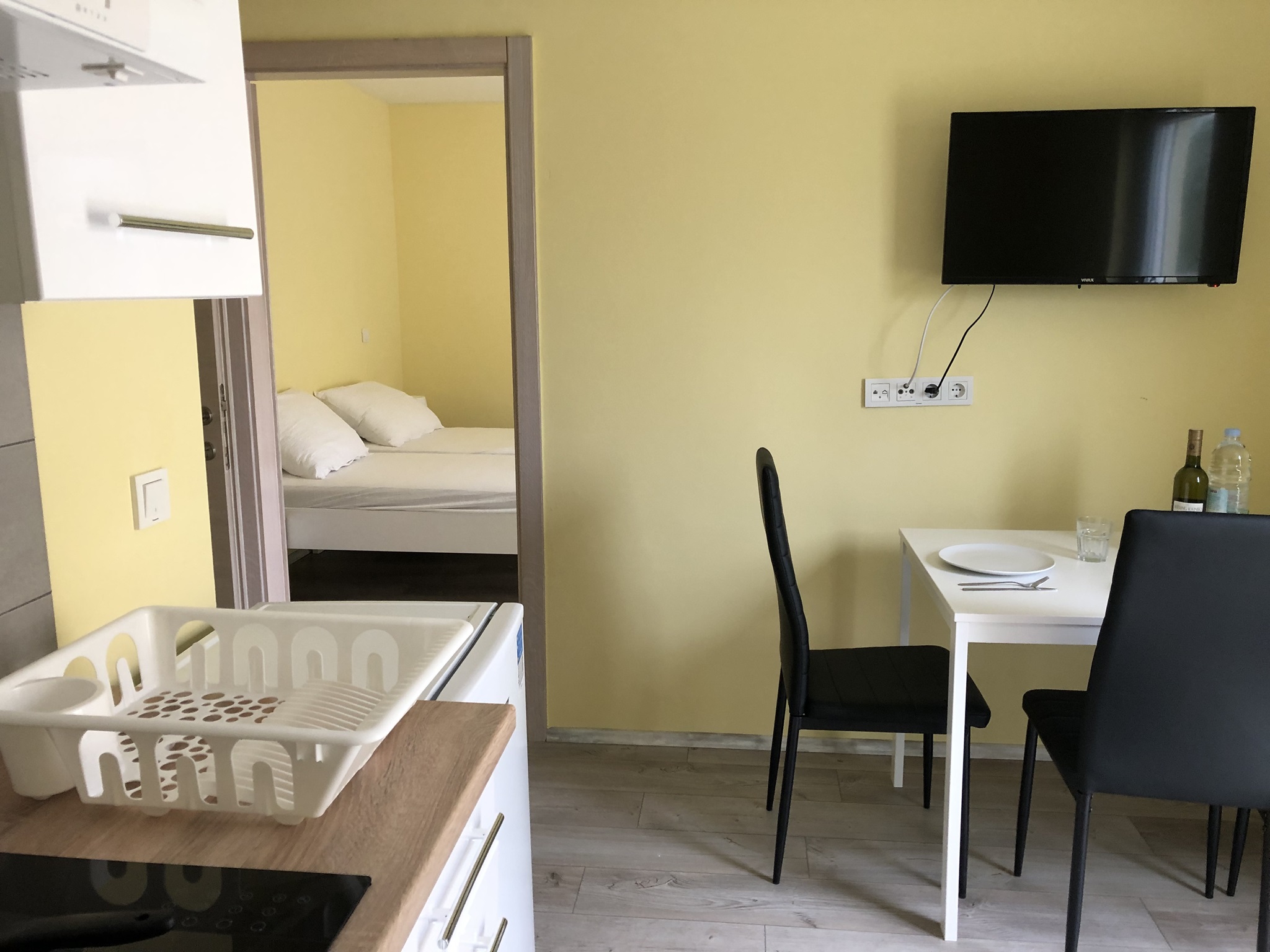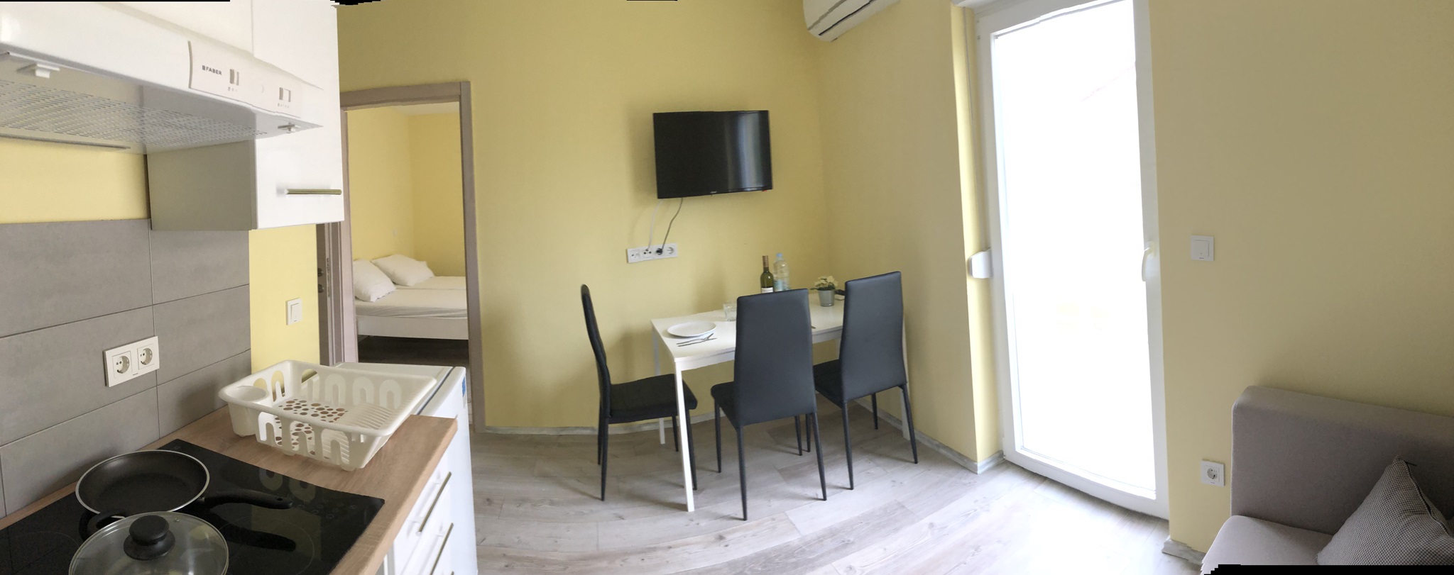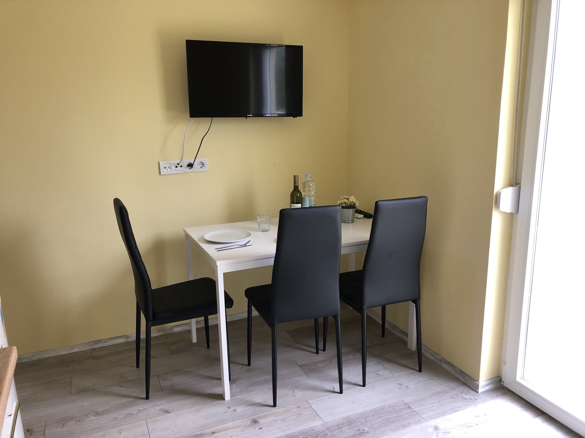 Die Wohnung 4 befindet sich im 1.OG des Hauses und bietet von dem Balkon aus Meerblick. Die Wohnung ist hochwertig ausgestattet mit einem Schlafbett und einem Schlafsofa. Sie besteht aus einem Wohn/Essbereich mit offener Küche, Bad mit Dusche, 1 Schlafzimmer.